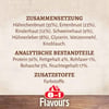 Fleisch und tierische Nebenerzeugnisse (23% Rinderhaut, 20% Hähnchenbrust, 17% Schweinehaut, 13% Entenbrust, 4% Hühnerleber), Pflanzliche Nebenerzeugnisse.