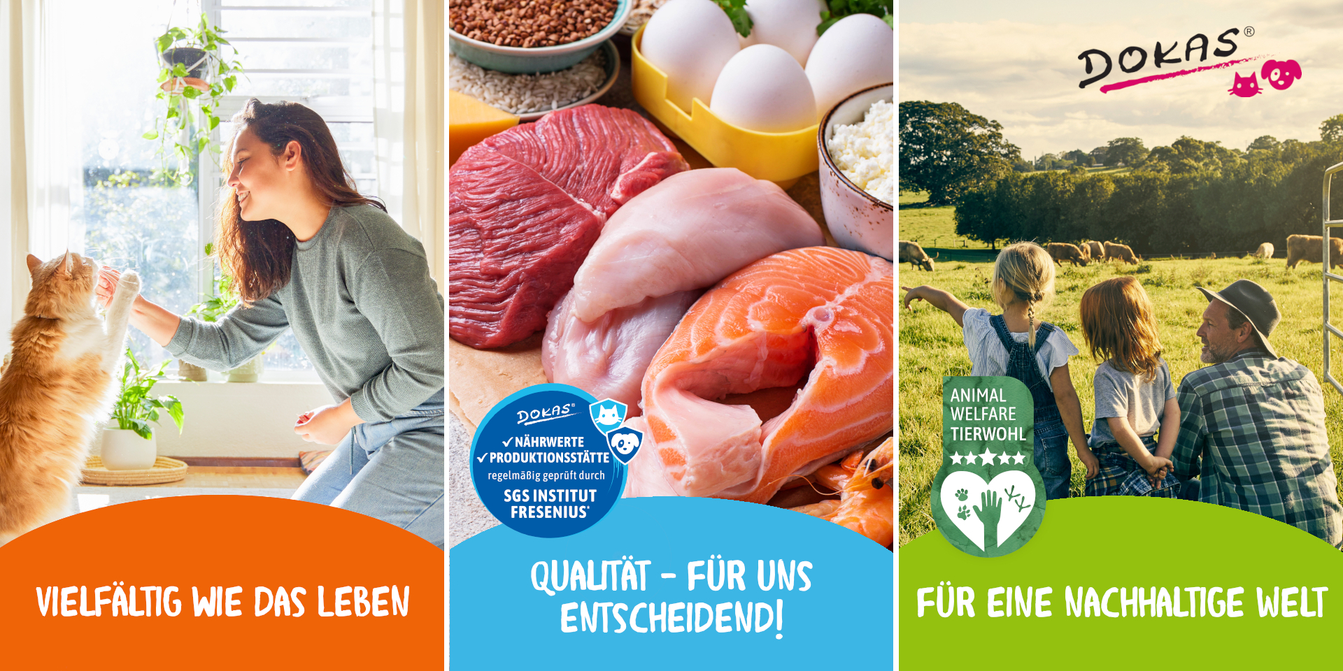 Bei der Auswahl und Verarbeitung der Rohstoffe wird größten Wert auf Qualität gelegt. Alle Snacks unterliegen einer regelmäßigen Qualitätskontrolle von SGS Institut Fresenius. Als erstes Pet Food Unternehmen ist DOKAS für die Nutzung artgerechter Haltungssysteme für die Kaninchensnack Range ausgezeichnet worden. Auch stammen die Fischsnacks aus nachhaltiger Fischerei.