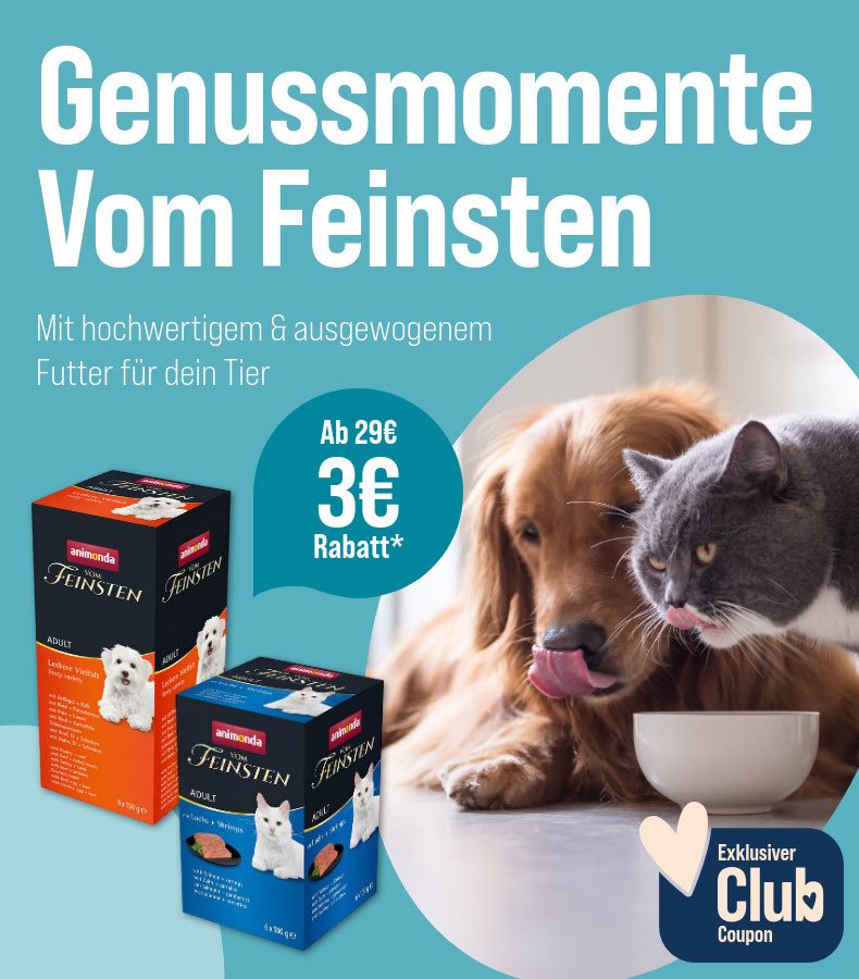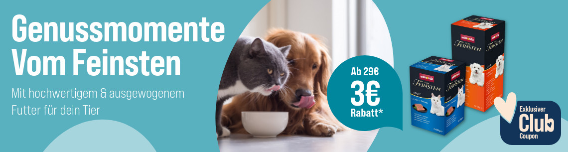 *Gültig vom 24.02.2025 bis 23.03.2025 nur für ZooRoyal Club Mitglieder. 3 € Rabatt ab 29 € Einkaufswert. Das Angebot gilt nur auf ausgewählte Produkte auf unserer Aktionsseite. Nur solange der Vorrat reicht. Gilt nur im ZooRoyal Online-Shop und nicht in den ZooRoyal Fachmärkten.