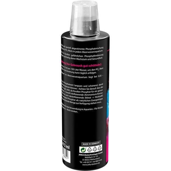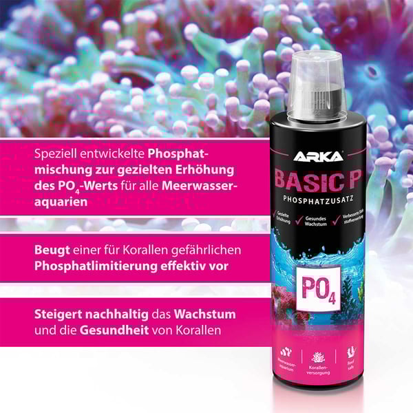 Mit ARKA BASIC P Phosphatzusatz kannst du den PO4-Wert in deinem Aquarium gezielt und sicher erhöhen. Die speziell abgestimmte Phosphatmischung sorgt dafür, dass deine Korallen und Pflanzen nicht unter einer gefährlichen Phosphatlimitierung leiden. So förderst du ein gesundes Wachstum und eine optimale Entwicklung deiner Aquarienbewohner.