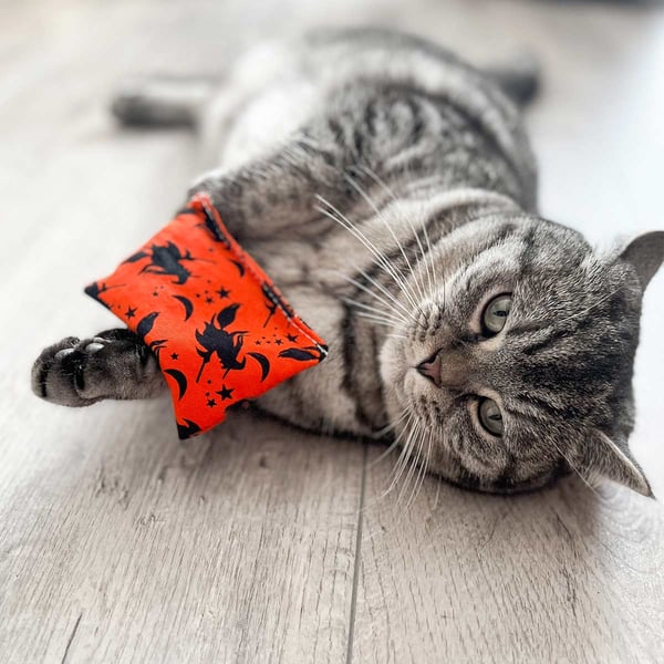 Lass deine Samtpfote von den kleinen Hexen auf dem Spielkissen von Aumüller verzaubern! In der knalligen Farbe Orange ist es der perfekte Begleiter für die Halloween-Zeit. Gefüllt mit Baldrianwurzel und Dinkelspelz animiert zum Spielen oder Entspannen.