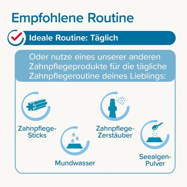 Mit dem innovativen 2-FACH ENZYM-SYSTEM trägt das beaphar Zahngel zur effektiven Reduzierung von Zahnbelag bei. Die spezielle Formel unterstützt die natürlichen Speichelfunktionen und sorgt so dafür, dass Zahnbelag entscheidend verringert wird. Dein Tier profitiert von einer besseren Zahnpflege ohne großen Aufwand.