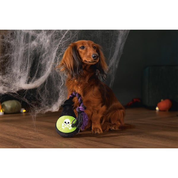 Das Beeztees Halloween Hundespielzeug Plüsch-Giftflasche ist das ideale Spielzeug für die gruselige Jahreszeit. Mit seinem einzigartigen Design in Form einer Giftflasche zieht es alle Blicke auf sich und sorgt für eine schaurig-schöne Atmosphäre.