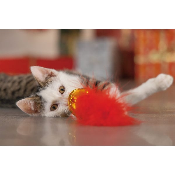Die Beeztees Weihnachtsglocke mit Feder ist das ideale Katzenspielzeug für die Feiertage. Der helle Klang der Glocke und die bunte Feder ziehen die Aufmerksamkeit deiner Katze auf sich und regen ihren Jagdinstinkt an. Mit den Maßen von 5 x 4 x 13 cm ist dieses Spielzeug perfekt für ausgiebigen Spielspaß geeignet.