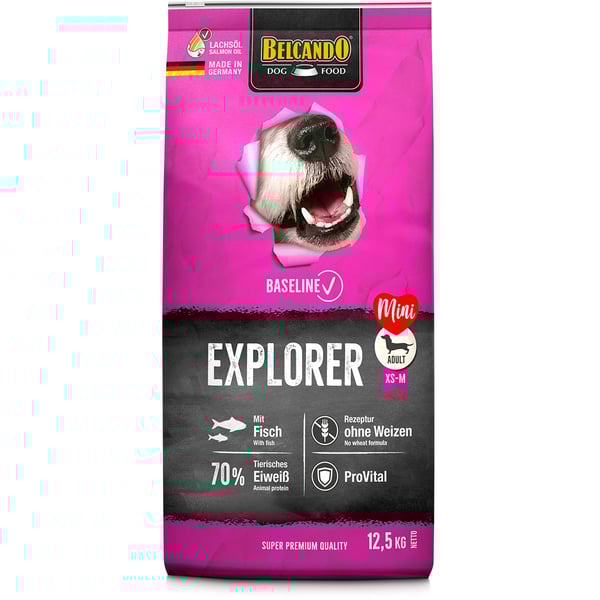 Hier gibt’s viel zu entdecken: zum Beispiel leckeren Fisch! Und besondere Zutaten wie Leinsaat und Bierhefe, die den kleinen bis mittelgroßen Spürnasen wichtige Omega-3-Fettsäuren und Vitalstoffe liefern. Unsere Vitalkomponente ProVital stärkt die Abwehrkräfte – genau richtig für tägliche Entdeckungstouren bei jedem Wetter!