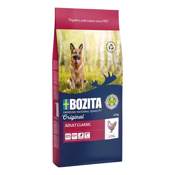 Dieses Alleinfuttermittel wird mit frischem schwedischem Huhn hergestellt und hat eine ausgewogene Nährstoffzusammensetzung. Die Kroketten sind für Hunde aller Größen und Rassen mit einem normalen Aktivitätsniveau geeignet.