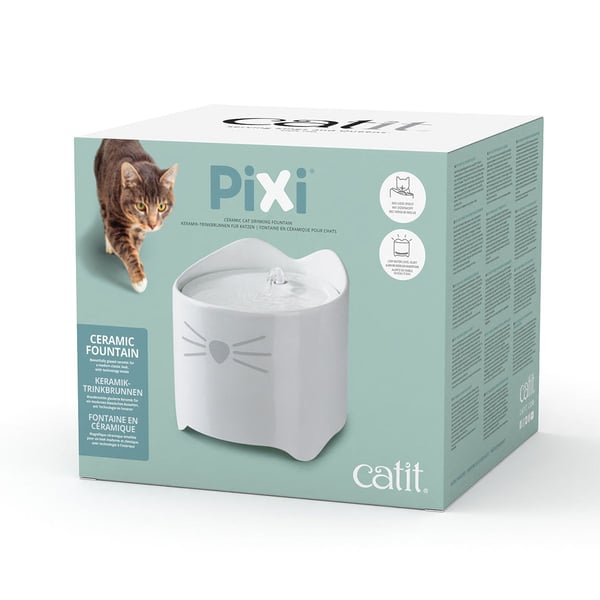 Der Catit Pixi Keramiktrinkbrunnen bietet deiner Katze stets frisches und sauberes Wasser. Der ergonomische Wasserspender ist so gestaltet, dass er die Schnurrhaare deiner Katze nicht behindert. Mit einem Fassungsvermögen von 1,7 Litern ist er ideal für den täglichen Gebrauch geeignet. Der Dreifachfilter sorgt dafür, dass das Wasser von Verunreinigungen befreit und enthärtet wird.