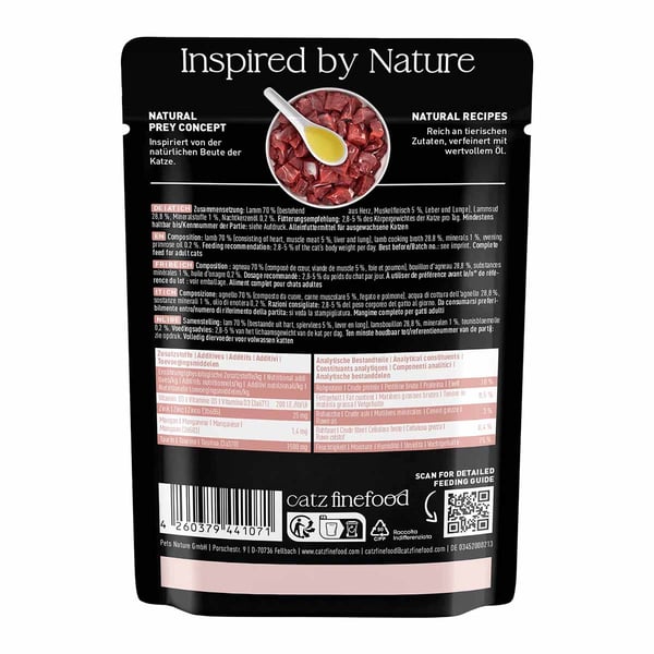 Da catz finefood Purrrr No.111 Lamm 16x85g getreidefrei ist und nur eine tierische Proteinquelle verwendet, ist es ideal für Katzen, die zu Allergien oder Unverträglichkeiten neigen. Auf die Zugabe von Farbstoffen und Konservierungsmitteln wird bewusst verzichtet, um eine natürliche Ernährung zu gewährleisten. Somit kannst du sicher sein, dass deine Katze nur das Beste erhält.