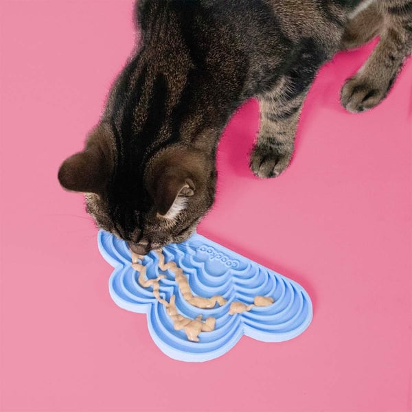 Die Coockoo Katzen Schleckmatte Snacks in the Sky ist die ideale Wahl für Hunde und Katzen, die Abwechslung beim Fressen schätzen. Diese hellblaue Silikonmatte in Wolkenform bietet deinem Haustier eine spannende Möglichkeit, Pasteten oder flüssige Snacks zu genießen. Die Saugnäpfe sorgen dafür, dass die Matte an Ort und Stelle bleibt, während dein Tier sich daran erfreut.