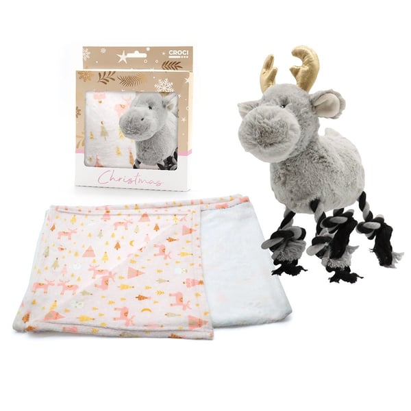 Das im Set enthaltene Rentier-Plüschspielzeug mit integriertem Quietscher sorgt für stundenlangen Spielspaß. Es ist ideal, um deinem Hund eine unterhaltsame Beschäftigung zu bieten und gleichzeitig seine Spielfreude zu fördern. Die Kombination aus Kuschel- und Spielmöglichkeiten macht das Set zu einem vielseitigen Begleiter für deinen Hund.