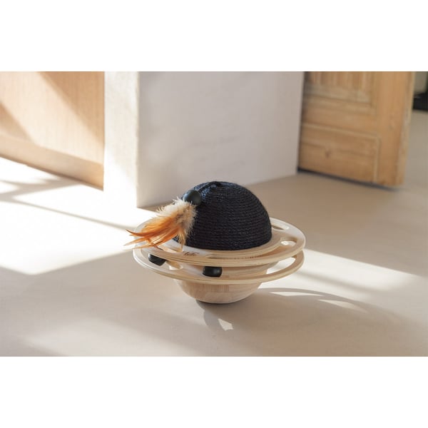 Der Baya Spielball ist mehr als ein einfaches Spielzeug. Der umlaufende Holzrahmen mit integrierten Spielbällen weckt den Jagdinstinkt deiner Katze, da die Bälle rollen, sobald sie angestoßen werden. Ein zusätzliches Seil mit Ball und Feder animiert zum Spielen und sorgt für abwechslungsreiche Beschäftigung. So bleibt deine Katze aktiv und unterhalten.