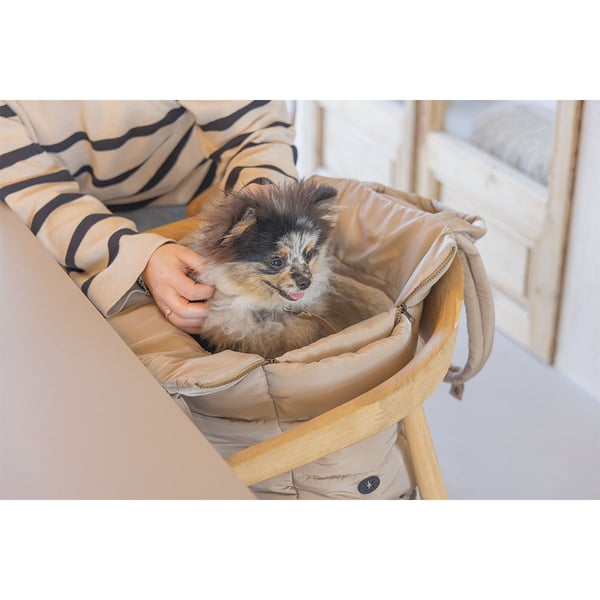 Das Innere der Tragetasche ist mit einer weichen, plüschigen Polsterung ausgestattet, die dank Klettverschluss leicht entnommen und bei 30 Grad in der Maschine gewaschen werden kann. Diese unkomplizierte Reinigung sorgt dafür, dass die Tasche stets hygienisch bleibt. Zudem bieten zwei praktische Taschen Platz für wichtiges Zubehör wie Leckerlis oder Kotbeutel.