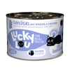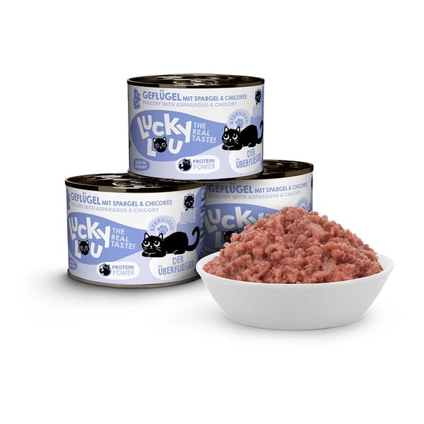Langweiligen Einheitsfraß gibt’s woanders – Lucky Lou Lifestage ist in 18 verschiedenen Sorten erhältlich. Damit du deinen Katzen immer frisches Futter servieren kannst, gibt es Lucky Lou Lifestage in Pouchbeuteln mit 125 g Inhalt sowie in Dosen zu 200 g und 400 g. Und Multipacks gibt’s natürlich auch!