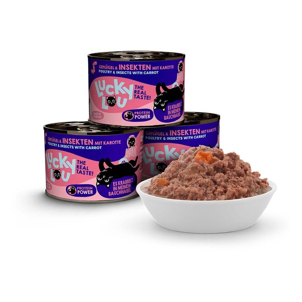 Ihr seht also: Mein Futter gibt es speziell auf unsere verschiedenen Lebensabschnitte und individuellen Bedürfnisse abgestimmt. Langweiligen Einheitsfraß gibt’s woanders – Lucky Lou Lifestage ist in 18 verschiedenen Sorten erhältlich. Damit du deinen Katzen immer frisches Futter servieren kannst, gibt es Lucky Lou Lifestage in Pouchbeuteln mit 125 g Inhalt sowie in Dosen zu 200 g und 400 g. Und Multipacks gibt’s natürlich auch!