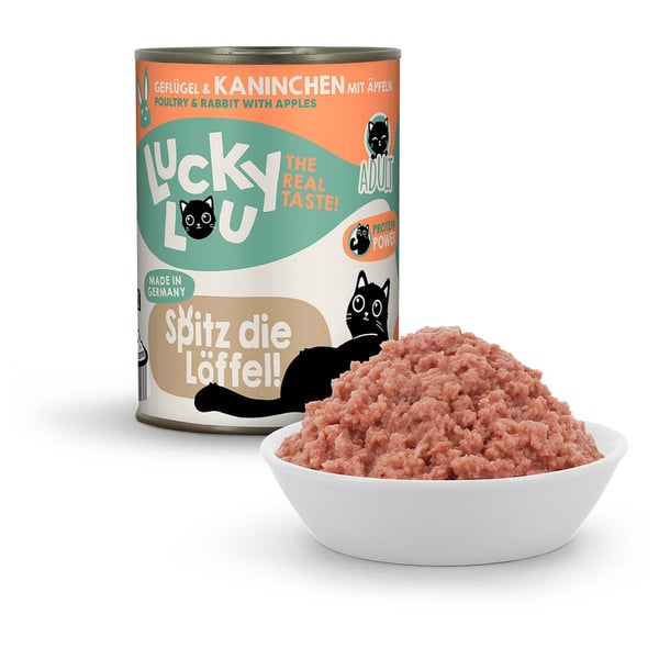 Ihr seht also: Mein Futter gibt es speziell auf unsere verschiedenen Lebensabschnitte und individuellen Bedürfnisse abgestimmt. Langweiligen Einheitsfraß gibt’s woanders – Lucky Lou Lifestage ist in 18 verschiedenen Sorten erhältlich. Damit du deinen Katzen immer frisches Futter servieren kannst, gibt es Lucky Lou Lifestage in Pouchbeuteln mit 125 g Inhalt sowie in Dosen zu 200 g und 400 g. Und Multipacks gibt’s natürlich auch!