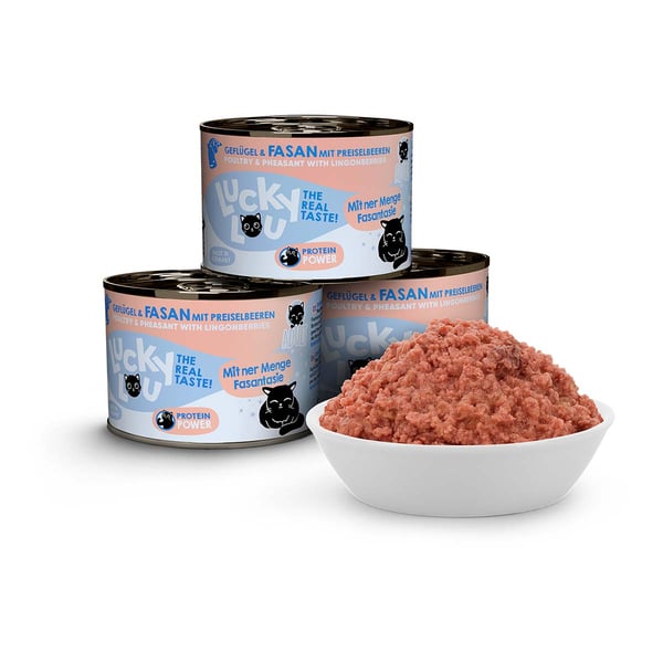 Ihr seht also: Mein Futter gibt es speziell auf unsere verschiedenen Lebensabschnitte und individuellen Bedürfnisse abgestimmt. Langweiligen Einheitsfraß gibt’s woanders – Lucky Lou Lifestage ist in 18 verschiedenen Sorten erhältlich. Damit du deinen Katzen immer frisches Futter servieren kannst, gibt es Lucky Lou Lifestage in Pouchbeuteln mit 125 g Inhalt sowie in Dosen zu 200 g und 400 g. Und Multipacks gibt’s natürlich auch!