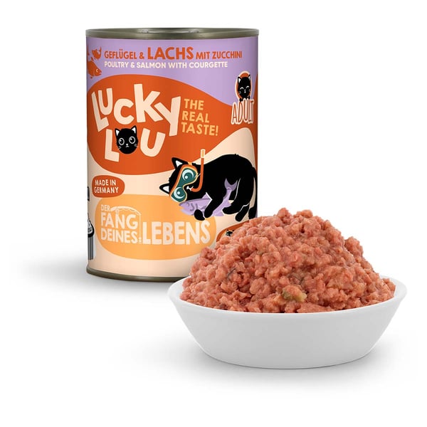 Langweiligen Einheitsfraß gibt’s woanders – Lucky Lou Lifestage ist in 18 verschiedenen Sorten erhältlich. Damit du deinen Katzen immer frisches Futter servieren kannst, gibt es Lucky Lou Lifestage in Pouchbeuteln mit 125 g Inhalt sowie in Dosen zu 200 g und 400 g. Und Multipacks gibt’s natürlich auch!