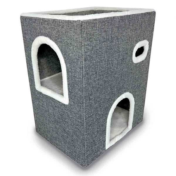 Das duvoplus faltbare Katzenhaus Gordon bietet deiner Katze einen sicheren und gemütlichen Rückzugsort. Mit seinen zwei Ebenen und den verschiedenen Ein- und Ausgängen kann deine Katze ihre Umgebung erkunden und sich gleichzeitig entspannen. Die weiche Plüschdecke sorgt für zusätzlichen Komfort.