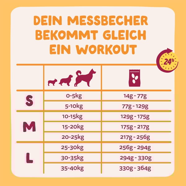 Zusatz Info: Diese Tabelle ist nur ein Leitfaden, da jeder Hund einzigartig ist. Kontaktiere Edgard & Cooper für detailliertere Richtlinien.