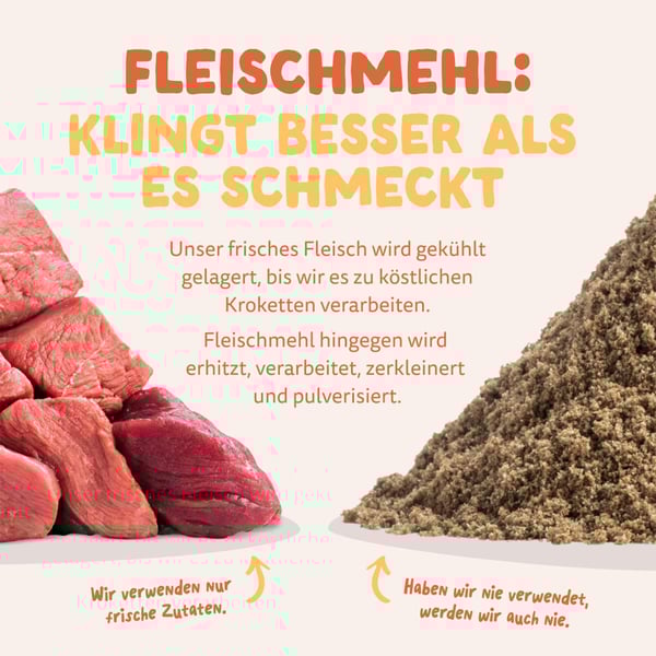 Unser Trockenfutter wird fachmännisch gekocht, um die natürlichen Inhaltsstoffe und den Geschmack zu bewahren. Diese Methode stellt sicher, dass dein Hund eine nahrhafte Mahlzeit erhält, die leicht verdaulich ist. Die Präbiotika tragen dazu bei, die Verdauung zu unterstützen, was es ideal für empfindliche Mägen macht.