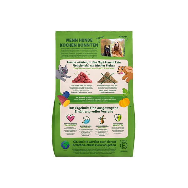 Edgard & Cooper legt großen Wert auf Nachhaltigkeit, sowohl bei der Herstellung als auch bei der Verpackung. Das Futter wird in Deutschland produziert und in biologisch abbaubaren Materialien verpackt. So kannst du sicher sein, dass du nicht nur deinem Hund, sondern auch der Umwelt etwas Gutes tust, während du ihm eine ausgewogene und natürliche Ernährung bietest.