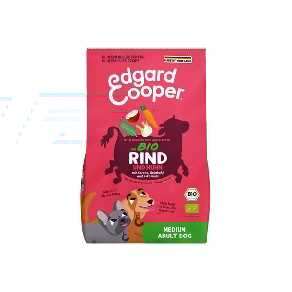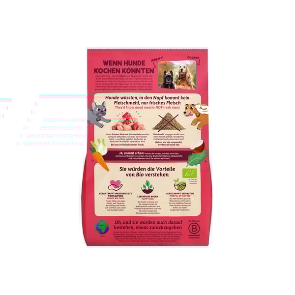 Mit Edgard & Cooper Bio Rind & Bio Huhn bietest du deinem Hund eine Mahlzeit, die aus frischem Rind und Huhn besteht. Die Bio-Zutaten garantieren höchste Qualität und stammen aus nachhaltiger Landwirtschaft. Die Rezeptur ist glutenfrei und enthält keine Fleischmehle, was sie zu einer optimalen Wahl für ernährungsbewusste Hundehalter macht.
