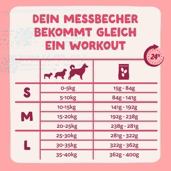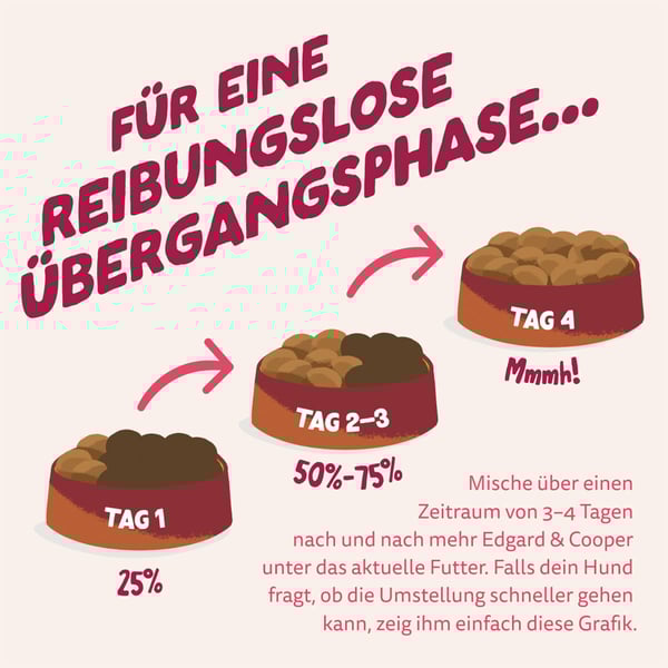 Zusatz Info: Diese Tabelle ist nur ein Leitfaden, da jeder Hund einzigartig ist. Kontaktiere Edgard & Cooper für detailliertere Richtlinien.