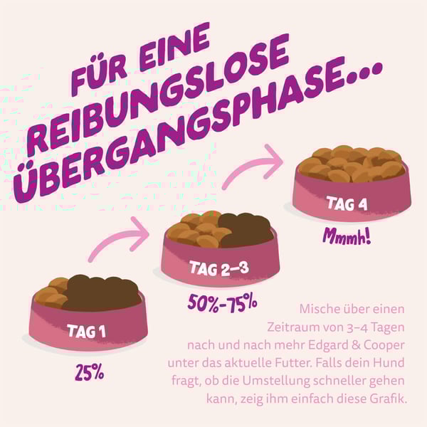 Tabelle separat bei den Abbildungen. Achte bitte auf die passende Krokettengröße. Zusatz Info: Diese Tabelle ist nur ein Leitfaden, da jeder Hund einzigartig ist. Kontaktiere Edgard & Cooper für detailliertere Richtlinien. Dein Hund ist kein Kaktus, er liebt es, regelmäßig Wasser zu schlürfen. Achte also darauf, dass immer frisches Wasser zur Verfügung steht, besonders wenn du ihn fütterst.