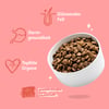 Frisches Huhn 35%, Süßkartoffeln, Erbsen, frischer Lachs 5%, Leinsaat, Erbsenprotein, Hühnersoße, Mineralstoffe, Mannan-Oligosaccharide (MOS), Fructo-Oligosaccharide (FOS), Brokkoli 0,04%, Blaubeeren 0,04%, Preiselbeeren 0,04%, Cranberrys 0,04%, Grünkohl 0,04%, Maca 0,04%, Ringelblumenblüten, Nesseln, Brombeerblätter, Fenchel, Kümmel, Kamille, Melisse, Glucosamin, Chondroitinsulfat.