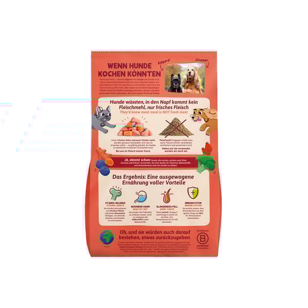 Edgard & Cooper Senior Frisches Huhn & Lachs bietet deinem Hund eine natürliche Ernährung mit frischem Huhn aus Freilaufhaltung und Lachs. Die getreidefreie Rezeptur ist ideal für ältere Hunde, die eine ausgewogene und natürliche Ernährung benötigen. Die sorgfältig ausgewählten Zutaten sind schonend gegart, um Geschmack und Nährstoffe zu bewahren.