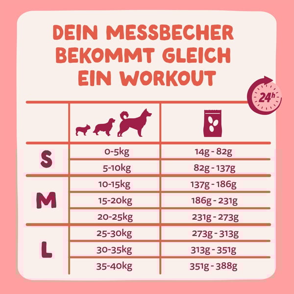 Zusatz Info: Diese Tabelle ist nur ein Leitfaden, da jeder Hund einzigartig ist. Kontaktiere Edgard & Cooper für detailliertere Richtlinien.