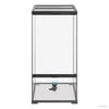 Das Paludarium ist leicht von vorne und oben zugänglich, was die Wartung erheblich vereinfacht. Die verschließbaren Einlässe für Kabel oder Schläuche und das effektive Schlauchmanagement machen es einfach, ein automatisches Beregnungssystem einzurichten. Der erhöhte Bodenrahmen bietet eine sichere Plattform für die Anbringung einer Heat Mat und sorgt für optimale Temperaturgefälle.