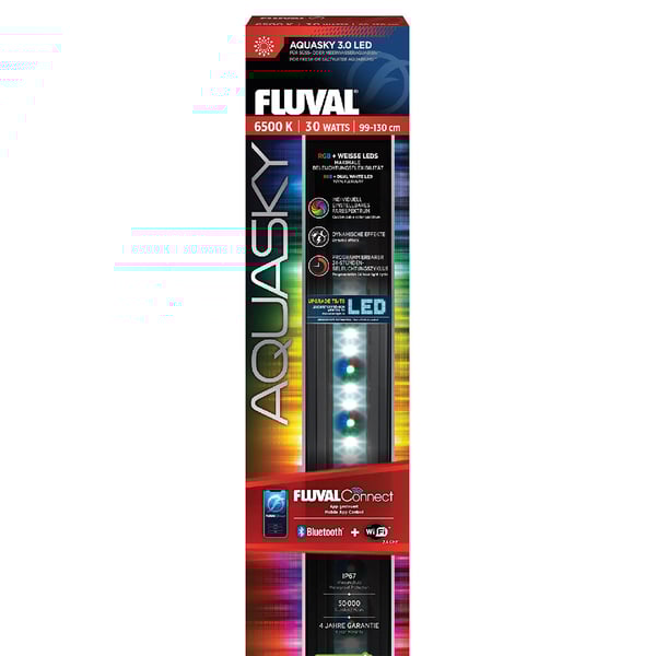 Die Fluval AquaSky LED 3.0 bietet dir eine vollständig anpassbare Beleuchtung, die das natürliche Sonnenlicht imitiert. Mit RGB + doppelt so vielen weißen LEDs kannst du das Farbspektrum nach deinen Wünschen einstellen. Die programmierbaren Beleuchtungszyklen lassen deinen Aquarienbewohnern einen natürlichen Tagesablauf erleben.