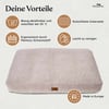 Das Hundekissen ist nicht nur komfortabel, sondern auch besonders pflegeleicht. Der Bezug lässt sich ganz einfach abziehen und bei 30 Grad in der Waschmaschine reinigen. So bleibt das Kissen stets hygienisch sauber und frisch, was für dein Zuhause und deinen Vierbeiner von Vorteil ist. Die formstabilen Eigenschaften des Kissens sorgen dafür, dass es auch nach vielen Waschgängen seine Form behält und deinem Hund dauerhaft einen bequemen Platz bietet.