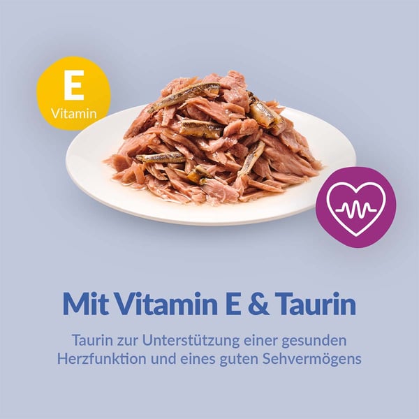 Dieses Nassfutter ist speziell auf die Bedürfnisse von jungen Katzen, erwachsenen Katzen und Senior-Katzen angepasst. Egal in welcher Lebensphase sich deine Katze befindet, GimCat ShinyCat Filet Thunfisch & Anchovis bietet die nötigen Nährstoffe, um sie optimal zu unterstützen. Die beigefügten Vitamine tragen zur allgemeinen Vitalität bei und sorgen dafür, dass sich deine Katze rundum wohl fühlt.