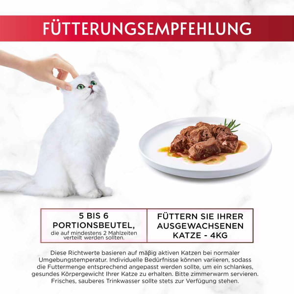 Verwöhnen Sie Ihre Samtpfote mit verschiedenen kleinen Köstlichkeiten über den Tag hinweg und servieren Sie unser Nassfutter in einer delikaten Sauce.
