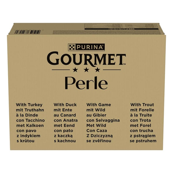GOURMET Perle regt die Sinne Ihrer Katze an – Aus hochwertigen Zutaten kreiert und in erlesenen Streifen serviert, wird jeder Bissen zu einem unwiderstehlichen Geschmackserlebnis. Unser Katzenfutter Mix sorgt für Vielfalt und Abwechslung bei der täglichen Mahlzeit. Die praktischen Beutel sind ideal zum Portionieren geeignet. PURINA GOURMET Katzenfutter steht für eine unvergleichliche Vielfalt und Auswahl an erlesenen Genusskreationen. Innovative Rezepturen aus besten Zutaten erfüllen die kulinarischen Wünsche aller Samtpfoten. Jeden Tag aufs Neue.