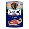 Happy Dog Sensible Pure France Nassnahrung wird zu 100 % aus wertvollem Entenfleisch und -innereien in Deutschland hergestellt. Es enthält keinerlei Getreide und wird ohne Zuckerzusatz hergestellt. Durch die Verwendung von Ente als alleiniger tierischer Proteinquelle eignet es sich besonders zur Fütterung bei Futtermittelunverträglichkeiten. Sensible Pure France kann als Alleinnahrung gefüttert werden oder in Kombination mit Happy Dog Flockenmixer oder Happy Dog Trockenfutter. Hier eignet sich ideal Happy Dog Supreme Sensible France.