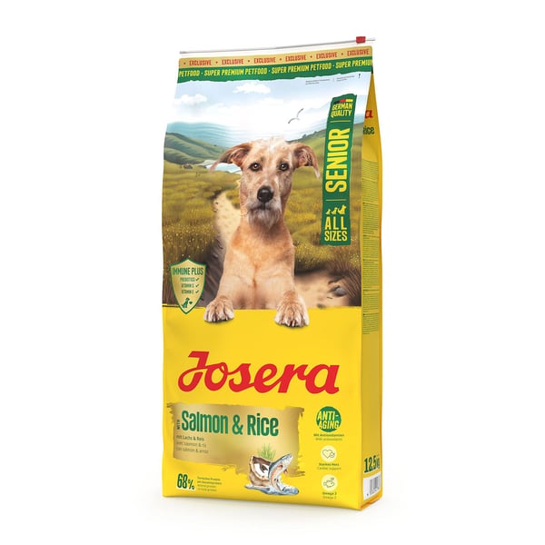 Für die älteren Semester auf vier Pfoten haben wir unser Josera Senior Salmon & Rice im Sortiment: Die Rezeptur des Hundefutters für Senioren wurde speziell auf die Bedürfnisse älterer Hunde zugeschnitten. Es ist fettreduziert und kann Übergewicht vorbeugen. Gleichzeitig entlastet ein reduzierter Eiweiß- und Mineralstoffgehalt die Organe.