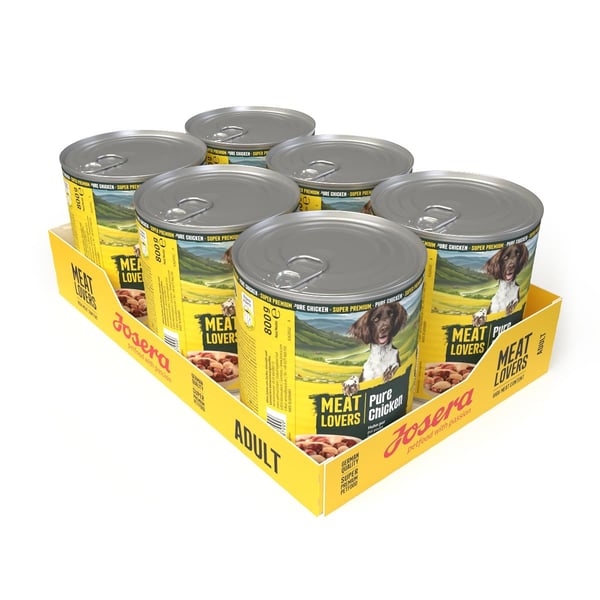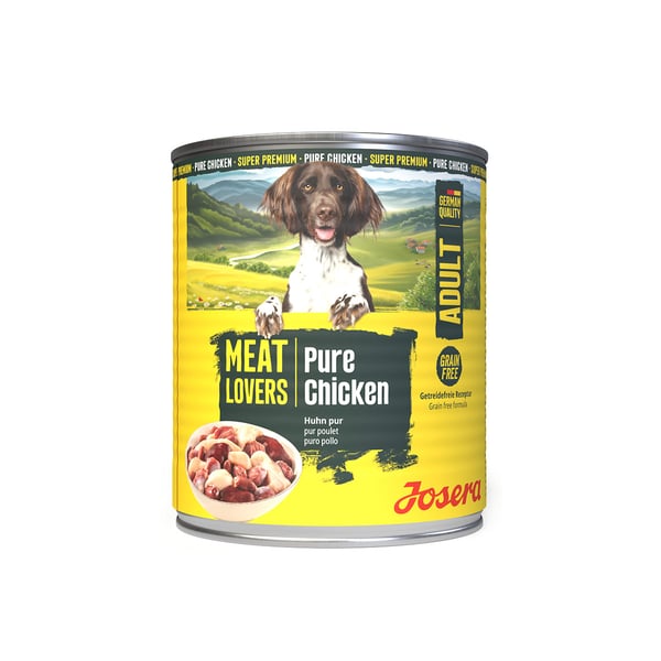 Echte Meat Lovers wissen, was sie wollen: Viel leckeres Fleisch! Und das bekommen sie mit unserem Meat Lovers Pure Chicken, direkt in den Napf. Unser Nassfutter für ausgewachsene Hunde bringt leckeres Huhn mit. Dabei ist die Rezeptur getreidefrei und glutenfrei und auf unnötige Zusätze von Zucker, Farb- und Aromastoffen sowie Konservierungsmitteln verzichten wir.