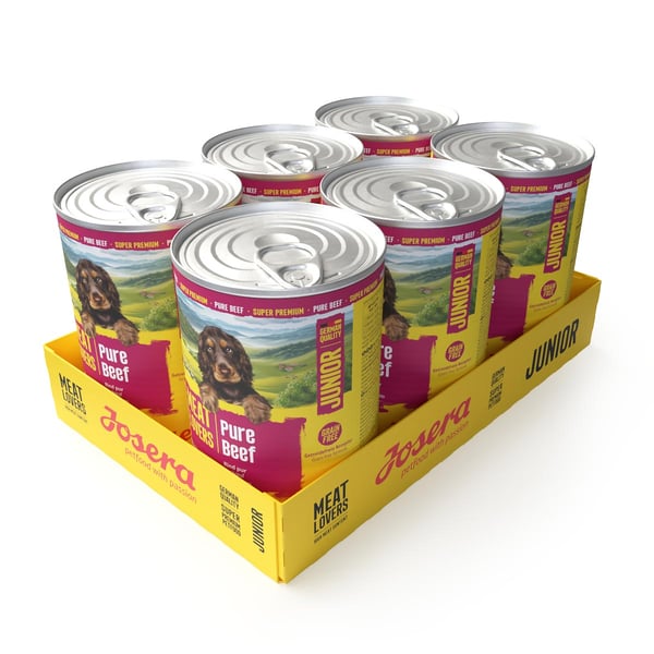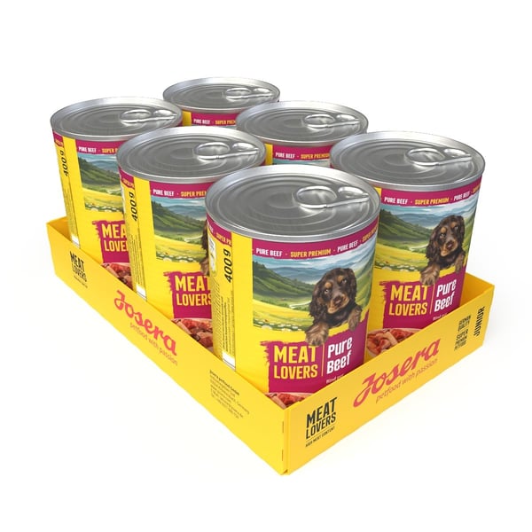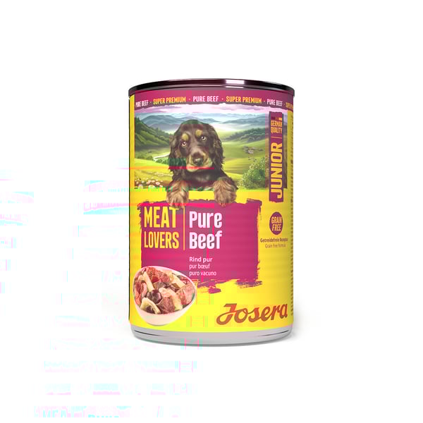 Dein Welpe will groß und stark werden, ohne auf leckeren Geschmack verzichten zu müssen? Dann öffne ihm eine Dose Meat Lovers Junior Pure Beef – das Hundefutter mit Monoprotein vom Rind für junge Feinschmecker.