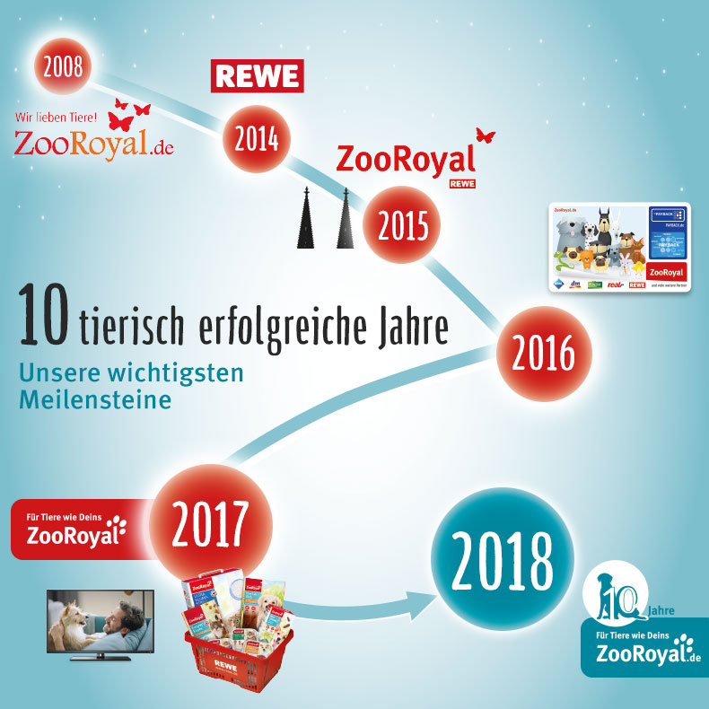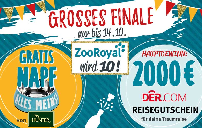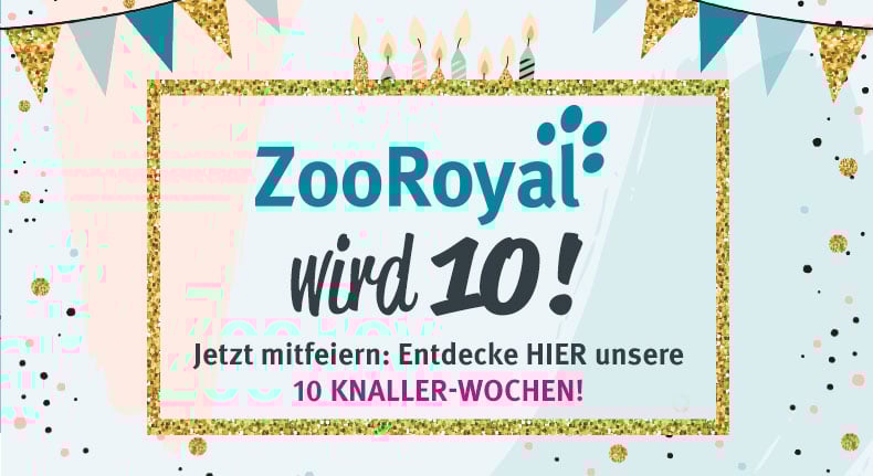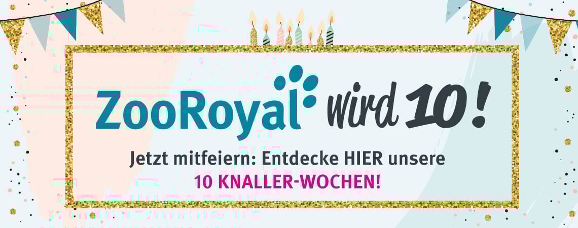 ZooRoyal hat Geburtstag - und du feierst mit! Anlässlich unseres Jubiläums erwarten dich 10 Wochen lang (vom 6.8. bis zum 14.10.) Knaller-Angebote, 10 tierisch heiße Gewinne im Wert von insgesamt 10.000 Euro und zahlreiche Jubel-Specials. Hier haben wir alle Highlights für dich zusammengefasst.