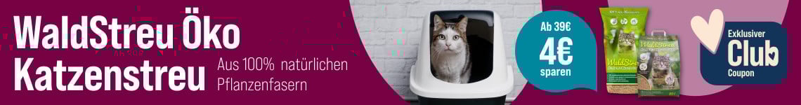Unser Tipp: Für Komfort auf der Katzentoilette empfehlen wir Natural Klumpstreu, eine umweltfreundliche Variante von Catsan Katzenstreu. Sie basiert auf nachwachsenden Rohstoffen und ist zu 100 % biologisch abbaubar. Bewusst zum Wohle von Tier und Umwelt.