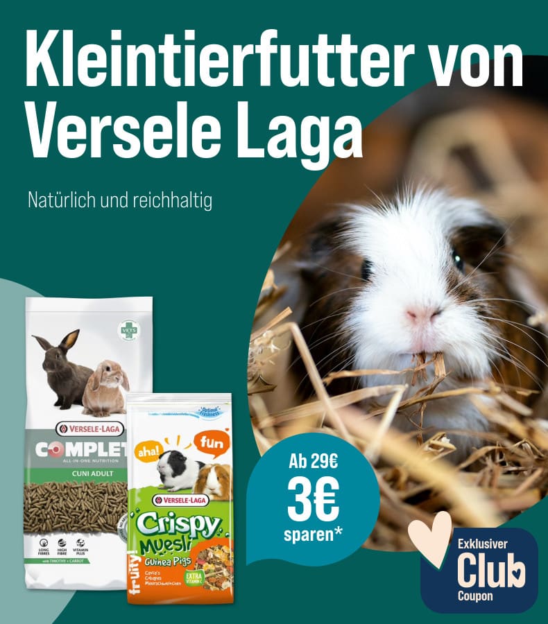 *Gültig vom 01.12.2025 bis 28.12.2025 nur für ZooRoyal Club Mitglieder. Spare 3 € ab 29 € auf Versele Laga Kleintierfutter. Gilt nur auf ausgewählte Produkte dieser Aktionsseite. Gilt nur im ZooRoyal Online-Shop und nicht in den ZooRoyal Fachmärkten.