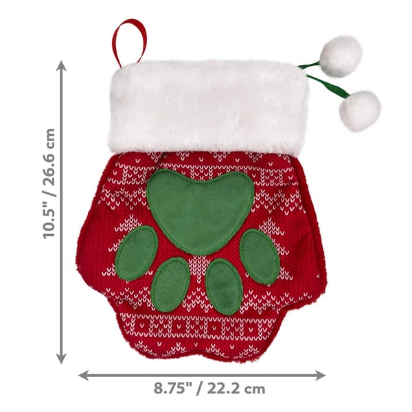 Der KONG Holiday Weihnachtsstrumpf-Pfote für Hunde und Katzen ist die ideale Wahl, um festliche Stimmung in dein Zuhause zu bringen. Mit seinem fröhlichen Pulloveraufdruck und dem charmanten Pfotenaufnäher wird er zum Blickfang an deinem Kamin oder an der Tür.
