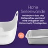Durch das intelligente Design mit 360° Sicht, fühlt sich deine Katze sicher. Das weiche und flexible Material passt sich auch engen Räumen an und die hohen und flexiblen Ränder verhindern das Herausfliegen von Streu.