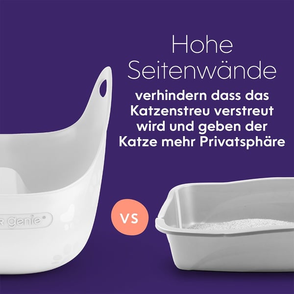 Die einzigartige Form der Litter Genie® LitterBox erleichtert dir die Reinigung und ist bequem für deine Fellnase. Eine Win-Win-Situation! Mit den integrierten Griffen, den weichen, abgerundeten Ecken und den hochflexiblen Kanten lässt sich die Katzentoilette schnell und einfach reinigen. Deine Katze wird sie lieben und du auch!