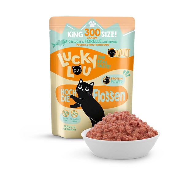 Langweiligen Einheitsfraß gibt’s woanders – Lucky Lou Lifestage ist in 18 verschiedenen Sorten erhältlich. Damit du deinen Katzen immer frisches Futter servieren kannst, gibt es Lucky Lou Lifestage in Pouchbeuteln mit 125 g Inhalt sowie in Dosen zu 200 g und 400 g. Und Multipacks gibt’s natürlich auch!