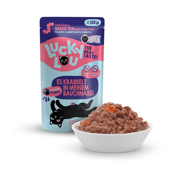 Ihr seht also: Mein Futter gibt es speziell auf unsere verschiedenen Lebensabschnitte und individuellen Bedürfnisse abgestimmt. Langweiligen Einheitsfraß gibt’s woanders – Lucky Lou Lifestage ist in 18 verschiedenen Sorten erhältlich. Damit du deinen Katzen immer frisches Futter servieren kannst, gibt es Lucky Lou Lifestage in Pouchbeuteln mit 125 g Inhalt sowie in Dosen zu 200 g und 400 g. Und Multipacks gibt’s natürlich auch!