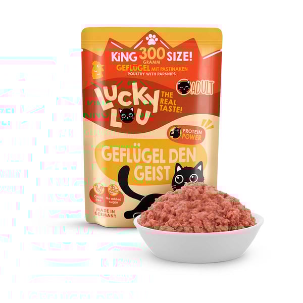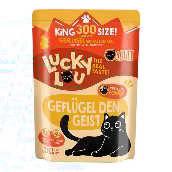 Langweiligen Einheitsfraß gibt’s woanders – Lucky Lou Lifestage ist in 18 verschiedenen Sorten erhältlich. Damit du deinen Katzen immer frisches Futter servieren kannst, gibt es Lucky Lou Lifestage in Pouchbeuteln mit 125 g Inhalt sowie in Dosen zu 200 g und 400 g. Und Multipacks gibt’s natürlich auch!